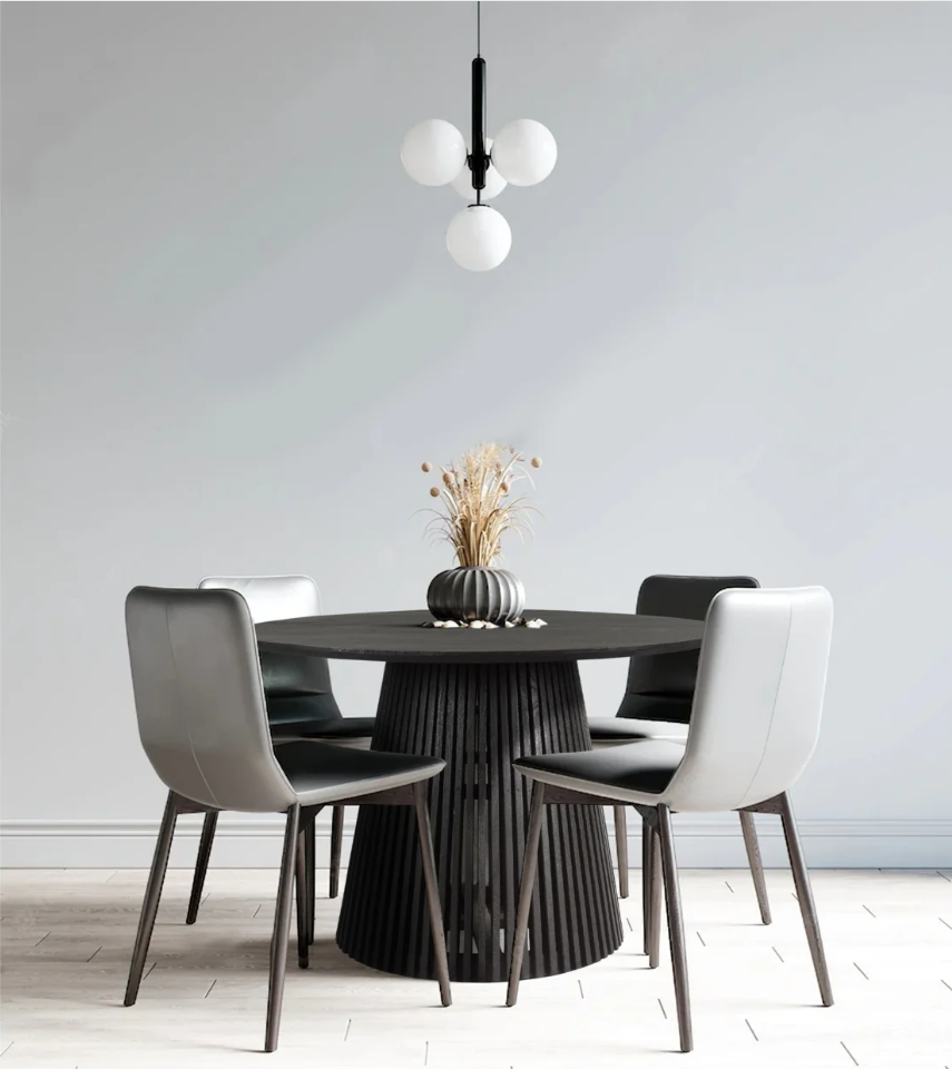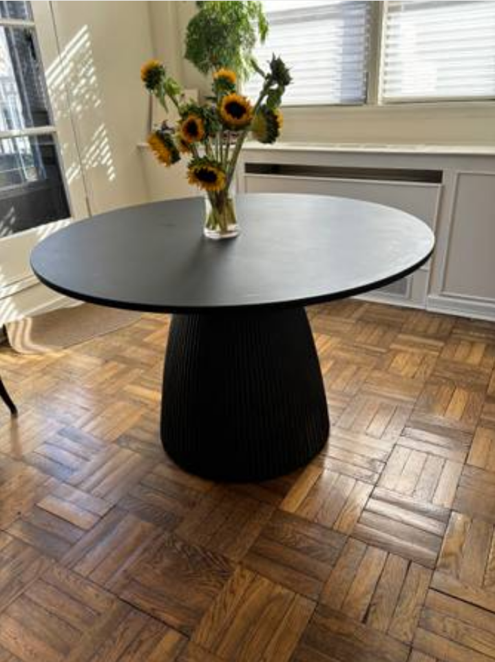 This Round Slatted Flared Base Magnesium Oxide Coffee Table catches the eye with its unique design. It has a flared base with a unique shape, showing individuality.