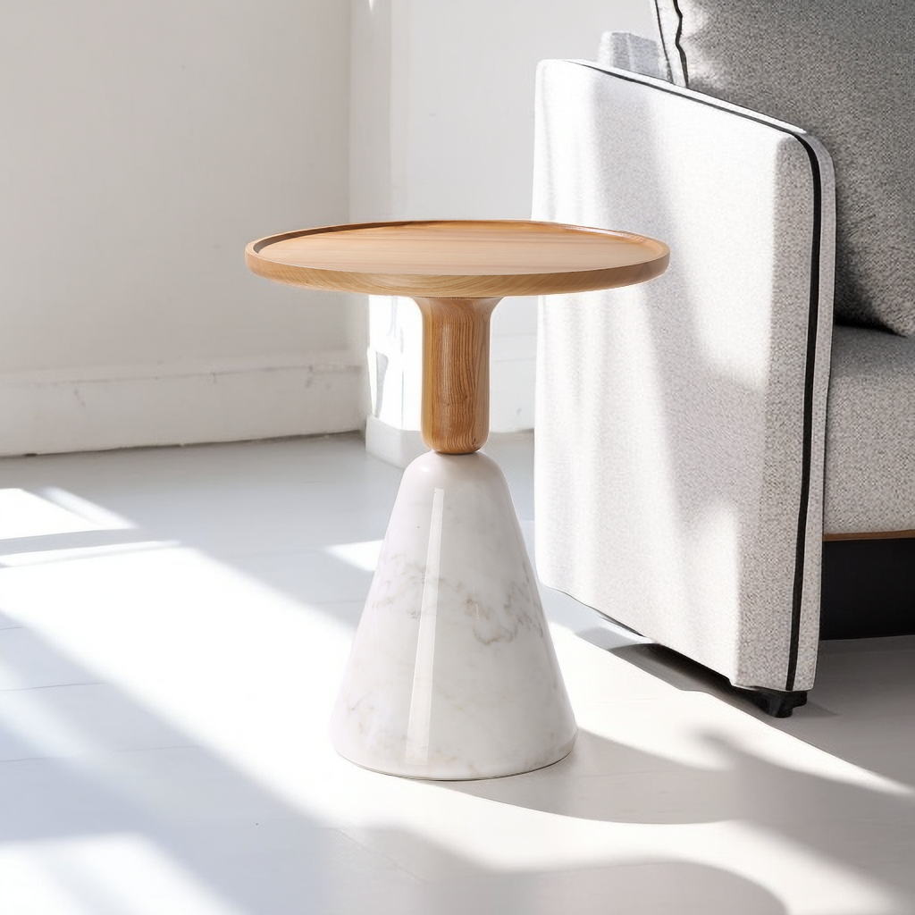 This round coffee table in cream style has two styles. One is white and made of wood and marble. Its color is warm and gives people a sense of natural freshness. The other white style is made of iron and marble, showing a unique modern industrial style. No matter which style it is, it has both beauty and practicality, adding an elegance and comfort to your home.